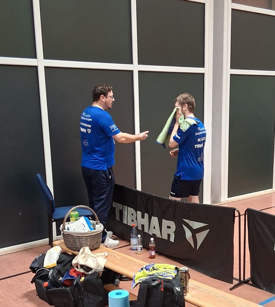 Schlusseinzel im ersten Einzeldurchgang inklusive Oberliga-Debut: Fichter – Lehmann. Tischtennis-Floskeln wie „gut gespielt“, „gut gekämpft“, „schade“ etc. könnten und sollten alle aus der Schublade gezogen werden. Und dennoch war es am Ende ein 1:3 und der 3:3-Pausenstand.