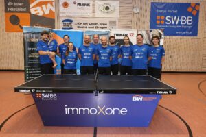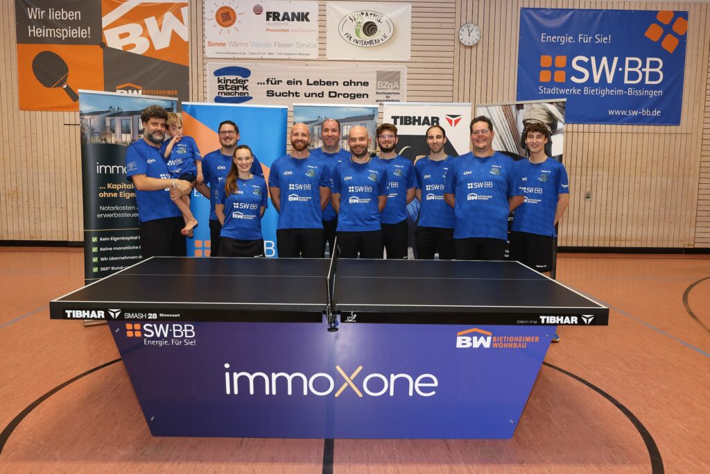 Ohne Kapitän und Schreiber des Berichts, Matthias Grünenwald, der bei der parallel stattgefunden TTBW-Präsidiums-Klausurtagung verpflichtet war, ging das Team mit Dome Markus, Tobi Vischer, Tim Janßen, Fynn Nickel, Dennis Strobel und Flo Grünenwald in die Partie. Gleich zu Beginn setzten die Bietigheimer mit drei Doppelsiegen ein Statement. Diese 3:0 Führung erhöhten Dome und Tobi durch zwei bärenstarke Siege gegen William Robert Pegg und Simon Kouril auf 5:0, ehe die Gäste aus dem Hohenlohischen durch einen 3:0 Sieg von Frederik Pernfuß gegen Tim zum Ehrenpunkt kamen. Fynn stellte mit einem 3:0 gegen Pascal Schweizer den alten Vorsprung schnell wieder her. Dennis siegte im Anschluss im spannendsten Spiel des Tages mit 11:9 im Entscheidungssatz gegen Finn Spang zum 7:1, während Paarkreuzkollege Flo in drei Sätzen gegen Benjamin Hager triumphierte, Den Schlusspunkt setzte Dome im Duell der Spitzenspieler gegen Simon Kouril mit einem fein herausgespielten Viersatzsieg.